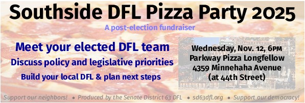 We are the DFL for Senate District 63, which includes southern and eastern south Minneapolis.