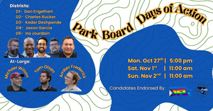 - Doorknock, phonebank, or flyer with Amber Frederick for Park Board 10am ( sign up for more details and meetup location)