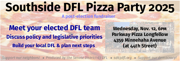 - SD63 Post-Election Pizza Party and Fundraiser! 6pm, Parkway Pizza – Longfellow (4359 Minnehaha Avenue)